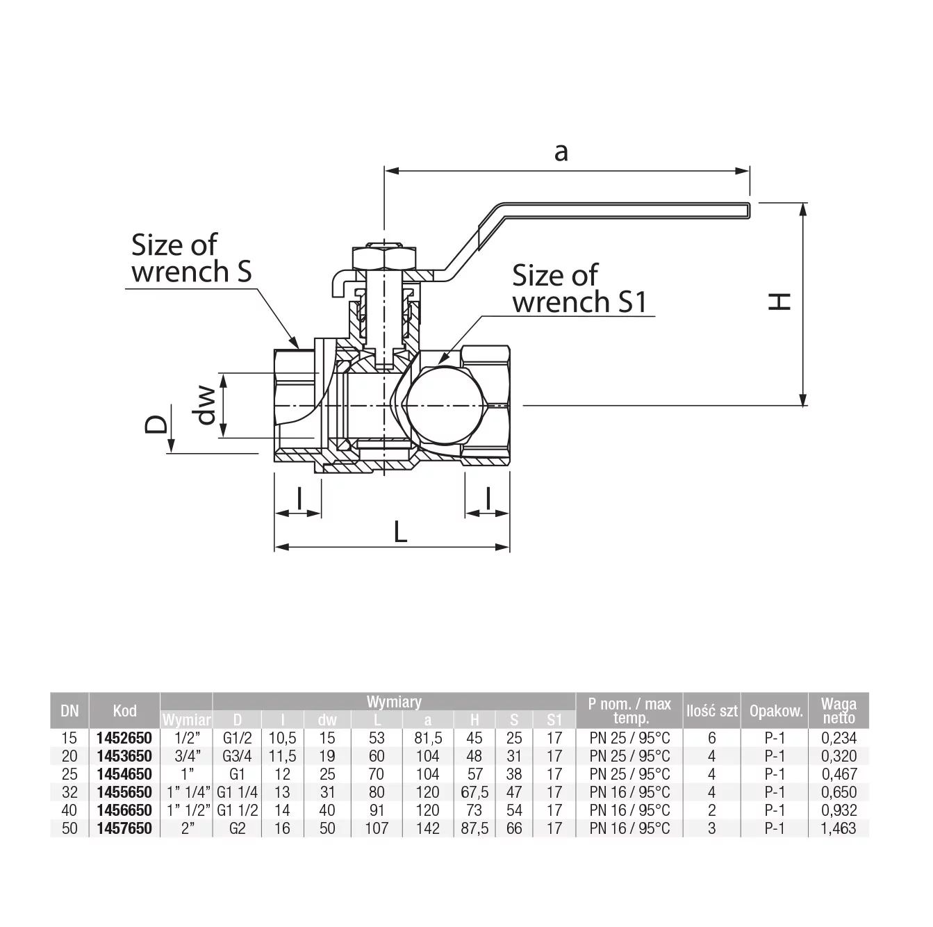 DN32 – DN 50:   1,6 MPa