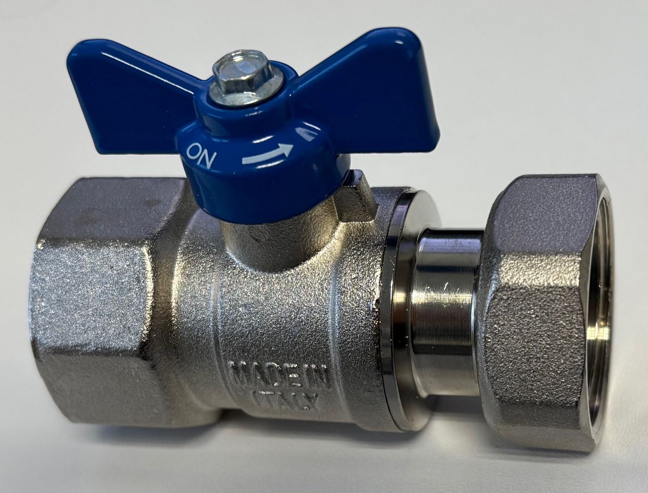 Kulový kohout 1" FF s převlečnou maticí a plochým těsněním, motýl modrý